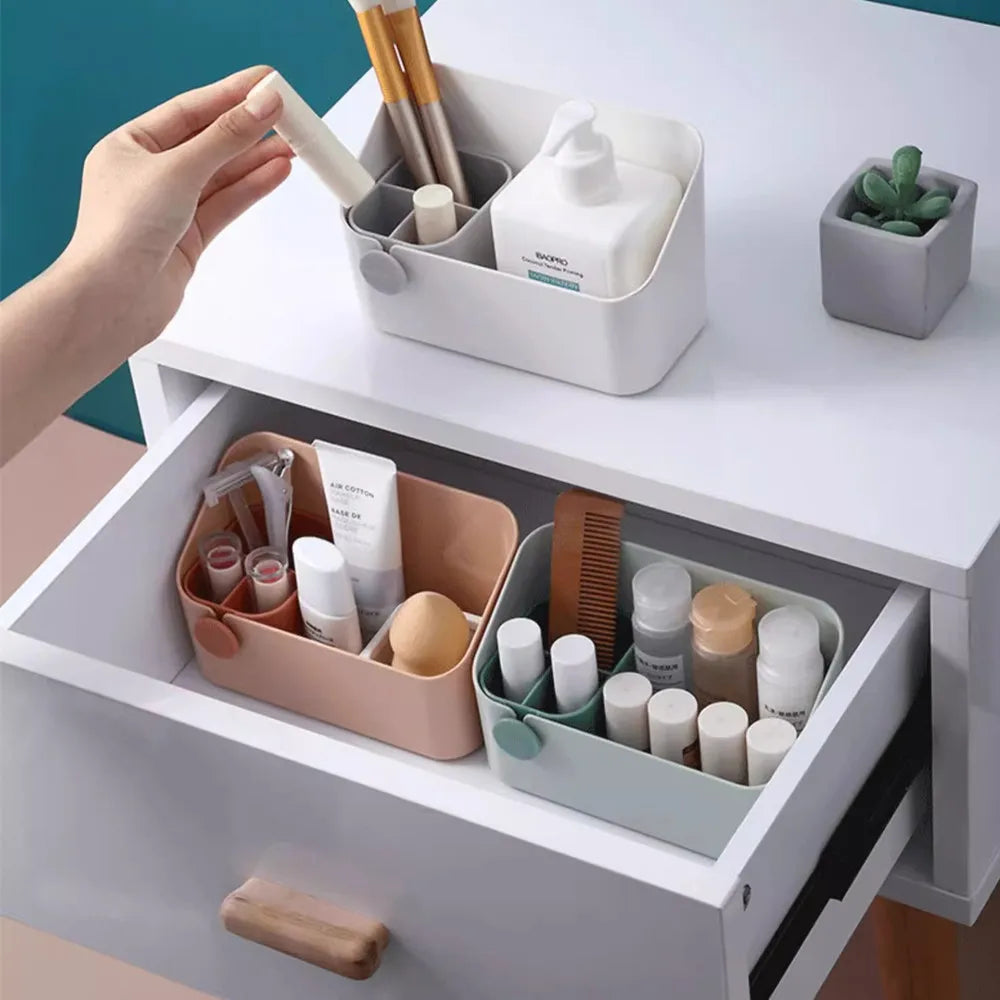 Parfaite pour vos cosmétiques et petits accessoires, cette boîte de rangement s’intègre facilement dans une armoire à miroir. Son format compact et son design épuré permettent aussi de l’utiliser sur un bureau, pour télécommandes ou objets divers. Multifonction, pratique et élégante, elle vous aide à garder chaque espace propre et bien organisé — de la salle de bain au salon.